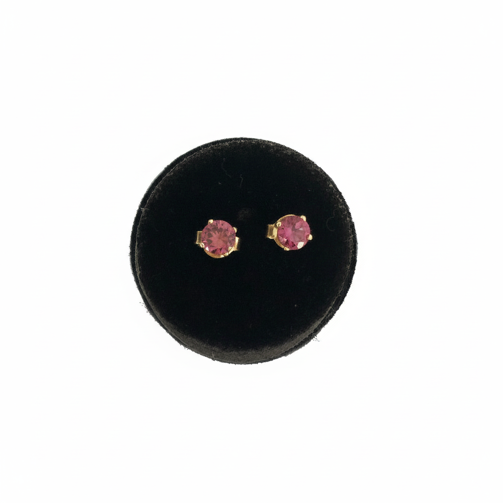Gorgeous raspberry quartz gemstone studs hang set in 10 K Canadian solid gold .