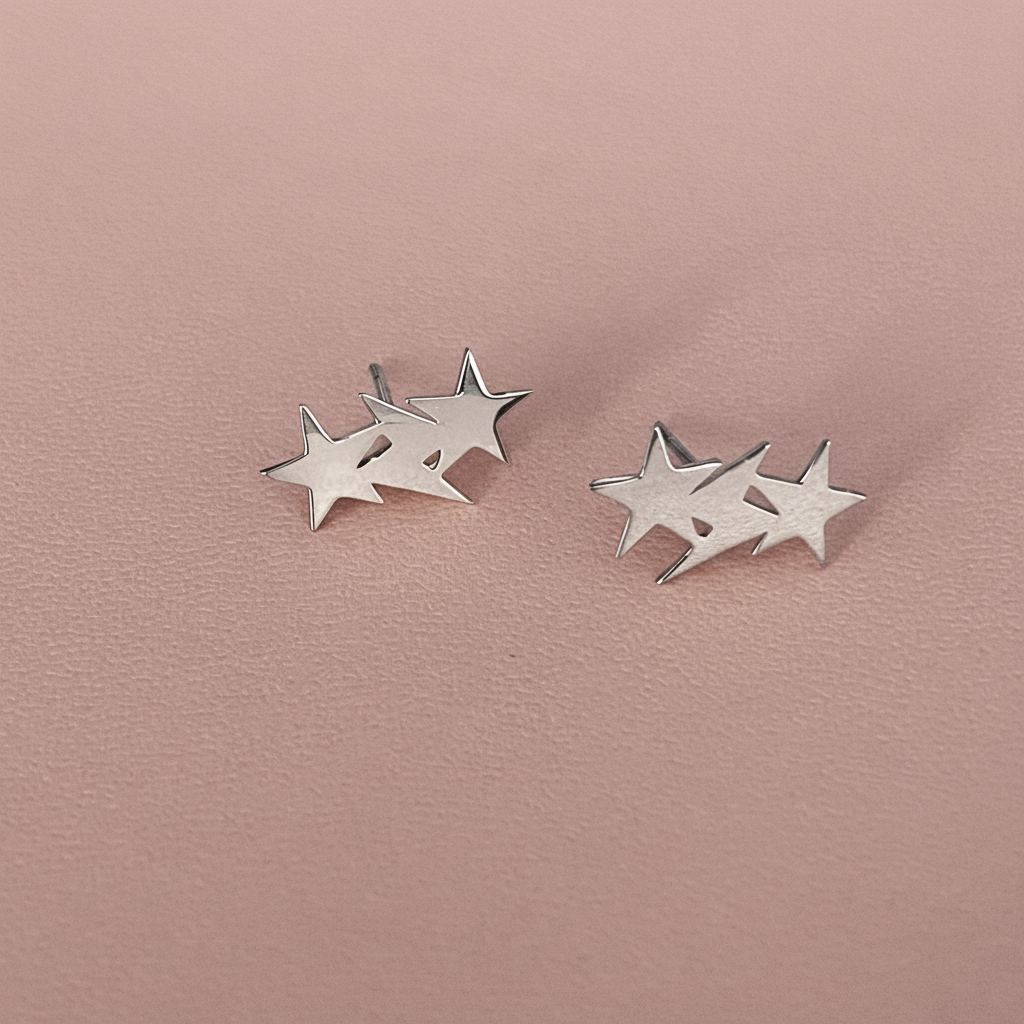 Unique star and lightening bolt cluster studs handcrafted in 10k Canadian solid gold